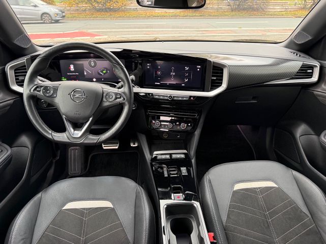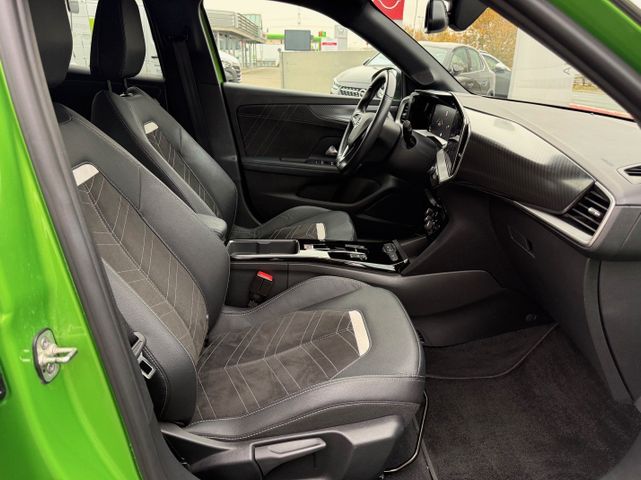 Akustischer Fußgängerschutz (Außensound), Audio-Navigationssystem Multimedia Navi Pro (10" Display), Bluetooth Audio-Streaming, DAB-Tuner (Radioempfang digital), Dach Diamant-Schwarz, Dachhimmel schwarz, Dachspoiler, Elektrofahrzeug, Elektromotor 100 kW (cont. 57 kW), Elektron. Stabilitäts-Programm Plus (ESP), Fahrassistenz-Paket: Active Drive Assist, Fahrassistenz-Paket: Active Drive Assist plus, Fahrassistenz-System: Müdigkeitserkennungs-Sensor, Fahrassistenz-System: Verkehrszeichenerkennung, Feststellbremse elektrisch, Freisprecheinrichtung (Bluetooth) mit Sprachsteuerung, Innenausstattung: Leder Alcantara, Karosserie: 5-türig, Klimaautomatik, Kopf-Airbag-System, Kühlergrill, Opel Vizor, Rahmen in Chrom, Ladekabel mit Schukostecker (Mode 2), Ladevorrichtung On-Board-Lader (11 kW), Lenkrad heizbar, LM-Felgen, MP3-Schnittstelle für Mobiltelefon/Handy, Nebelscheinwerfer LED, Radstand 2561 mm, Reifen-Reparaturkit, Seitenairbag vorn, Sicht-Paket, Sitzheizung vorn, Voll-LED (IntelliLux), Wärmeschutzverglasung, Wärmeschutzverglasung hinten abgedunkelt (Solar-Protect)